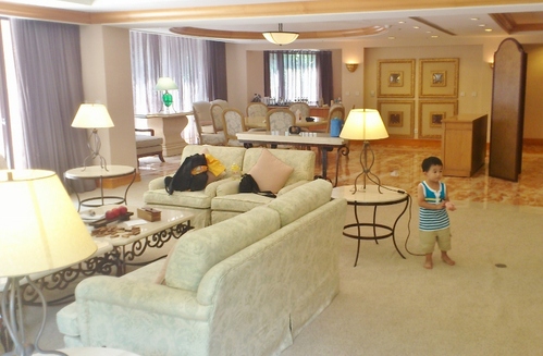 所以我們就這麼被升等到總統套房了, 因為裡面內含兩間房間, 我們又是一家人