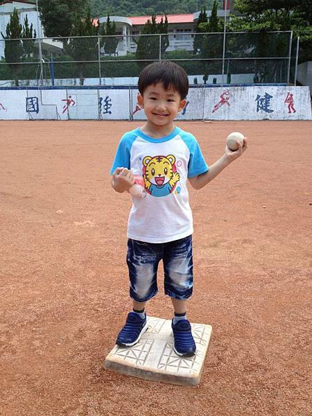 眼尖的他撿到了練習球, 開心的站在二壘壘包上拍照。