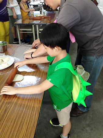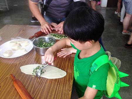 小牛弟也是覺得很新鮮有趣,拔蔥洗蔥都自己來,最後的做蔥餅也幾乎自己完成。