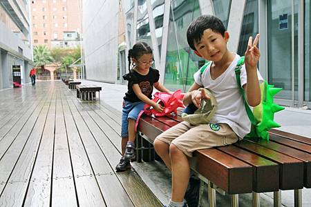 週末的午後,很多的家長帶小朋友來大東的中庭遊玩