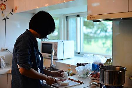 我真是走到哪...煮到哪....切菜頭切到青筋都要冒出來了~~(刀子太小!)