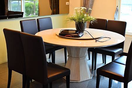 這個客廳裡還有一張餐桌,立馬將其設定為小孩用餐區,