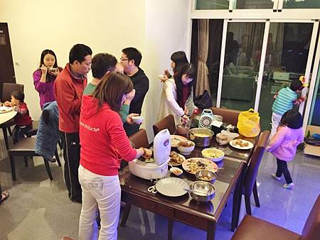 因為人數眾多很怕煮來不及大家吃,所以就決定每戶自帶拿手菜來,