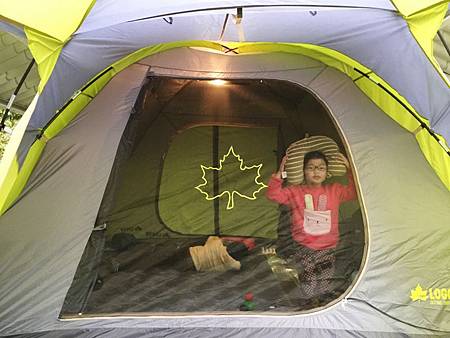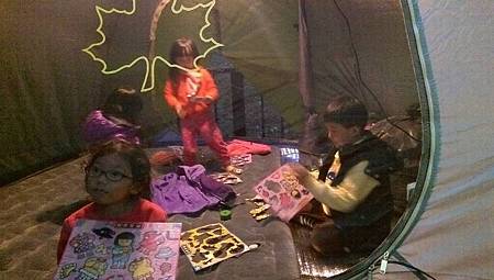 所有東西搬進帳裡,小朋友也進去開始玩了。