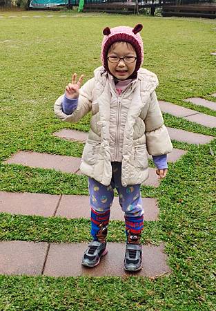 Dora全副武裝:毛帽+高領+羽絨外套+長襪,少了雨靴(下次添購就不怕雨了)