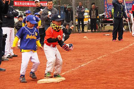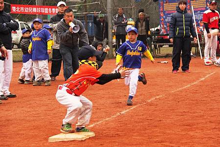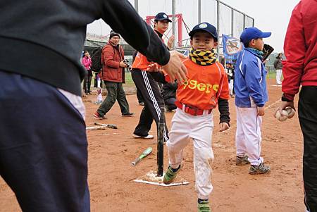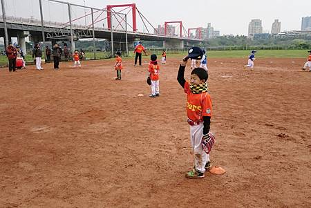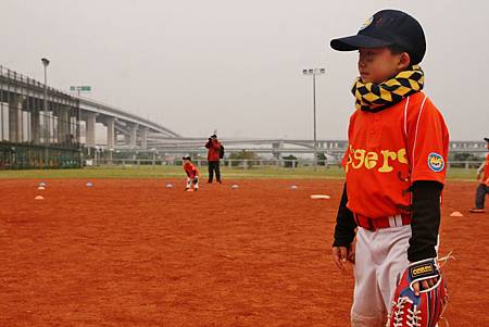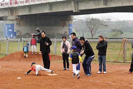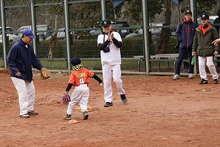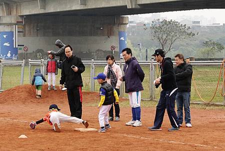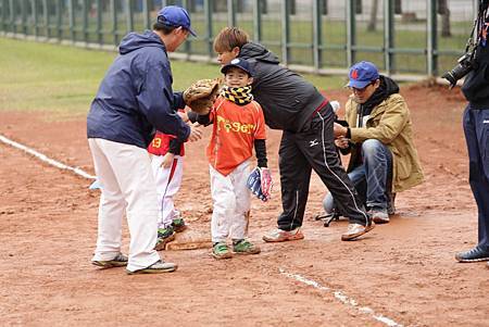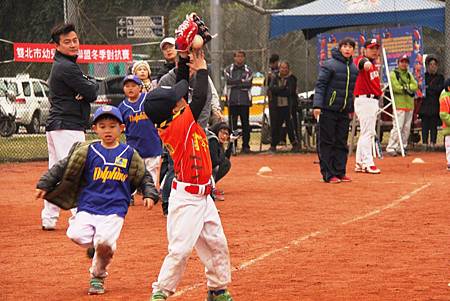 偏高也接得到,在旁邊的爸爸媽媽們都感到訝異,沈穩的投接是你從小努力的結果
