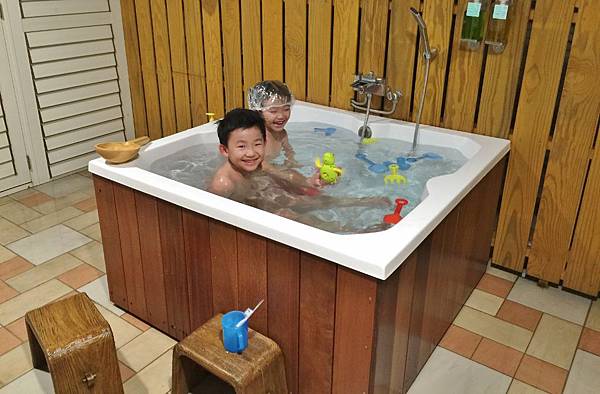 對了!剛前面有提到小朋友晚上在這戶外的浴缸泡澡,這是唯一被我加分的設備~