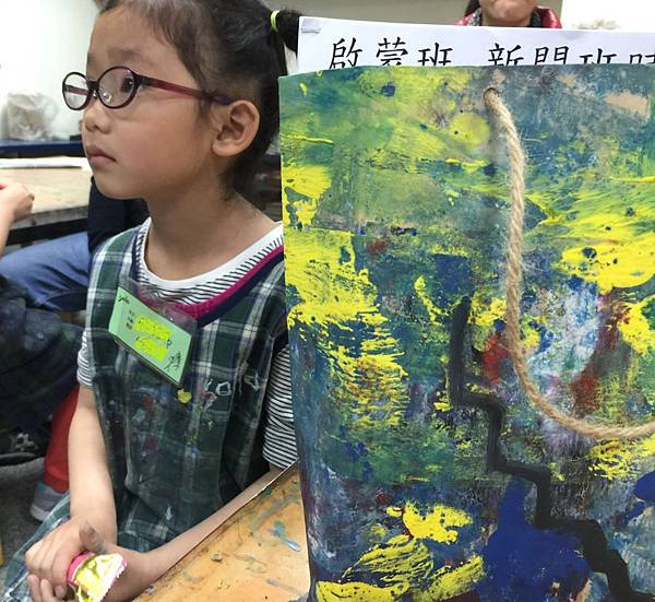 這一天,試上的小朋友有8個人,是一位男老師-紅茶老師來為大家上水彩手繪提袋。