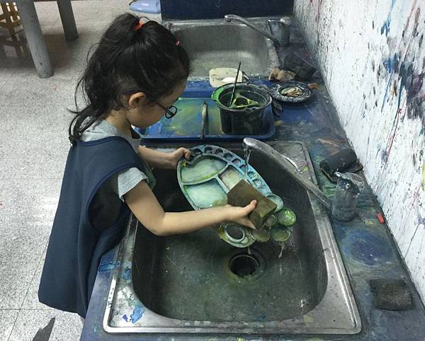 不只培養美感,更要練習常規,自己的工具自己清理是很重要的事。