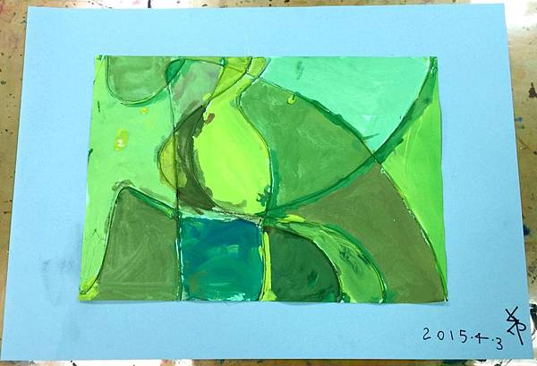 這一天,老師有限定是以綠色為基底,從綠色去發展出各種不同的綠。