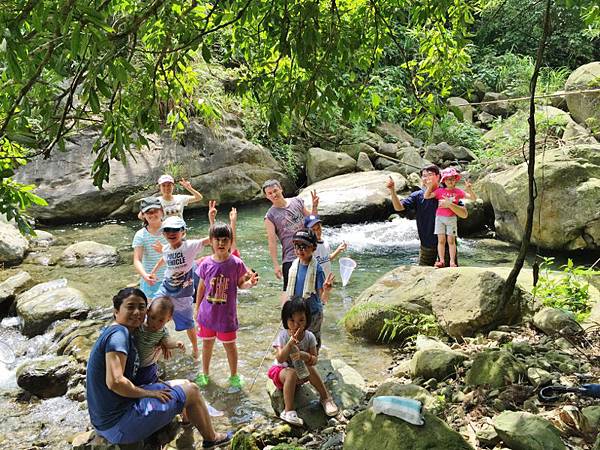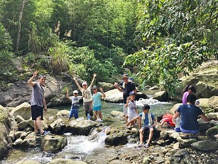 重點是讓他們碰碰溪水,踏踏石頭,懂得青苔會滑要小心,真實的踩在這片土地上。