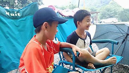 下著雨也要撿,露營是小朋友友情昇華的重要時刻,因為沒有其他玩具,只有彼此自己找樂子!