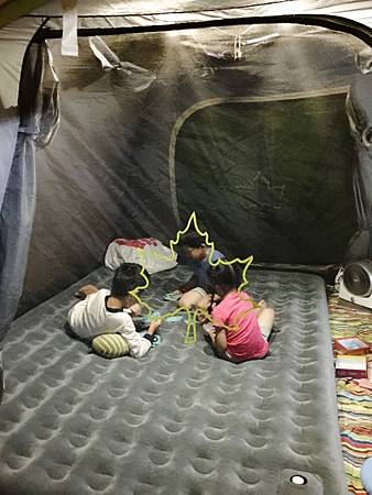 到了晚上,窩在帳棚裡開始玩桌遊,漸漸的在每次露營我都會帶桌遊出門,讓他們可以聚眾一起玩~