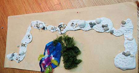還有,第一天還有用紙黏土先做珊瑚礁堡,這是哥哥的作品,比較有大塊面積的建構,