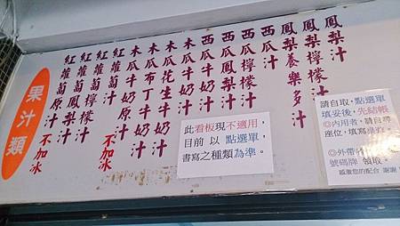 看這招牌,但我只有拍到果汁類,重點是因為此看板現不適用啦,哈哈~