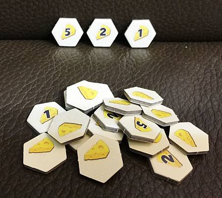 分數,就是這一堆的起司小卡囉~這小卡有代幣的概念,有1分,2分,5分三種,中間可隨時找零~