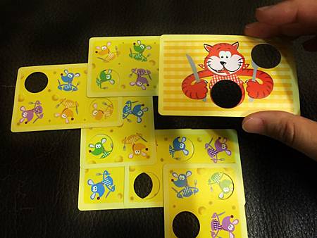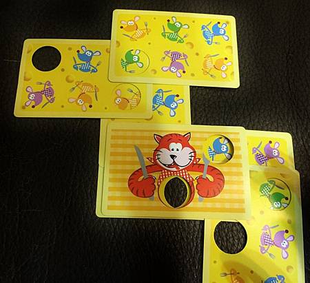 每一張老鼠卡上都有1-2個洞可以讓老鼠探出頭來,而有探出頭來的就可得起司分數,