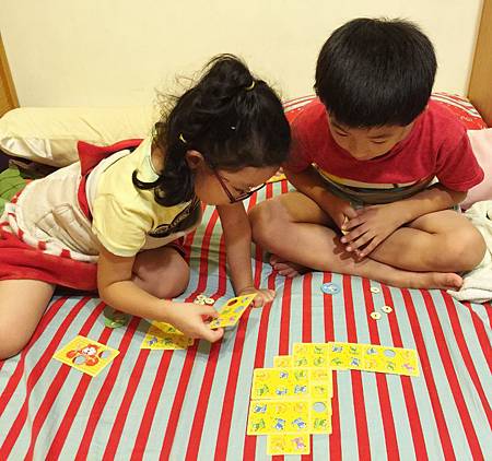 而且,小朋友的心其實很單純,她會想自己得分也可以幫別人得分,而貓咪卡如果蓋住別人的太多她會覺得不好意思.....(不像大人想得那麼有心機)