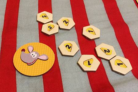 在說完遊戲規則後,就可以開玩了~這款桌遊其實對不滿5Y的妹妹來說偏難,她通常只顧得到自己的老鼠要探出頭來,至於別人的數量她就不太去管了~