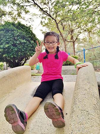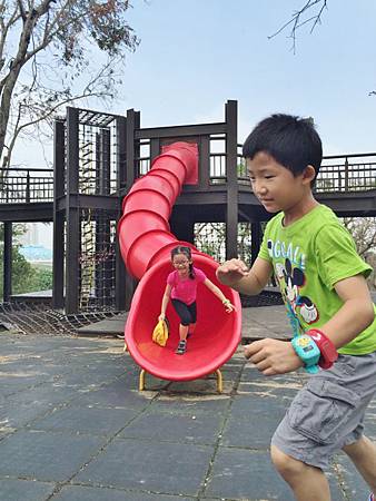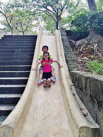 從這角度拍過去,特別有fu....當天天氣非常適合玩溜滑梯,而且這裡也有樹不至於會很曬喔!