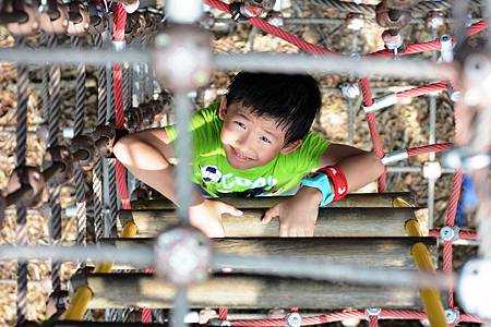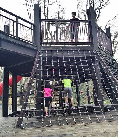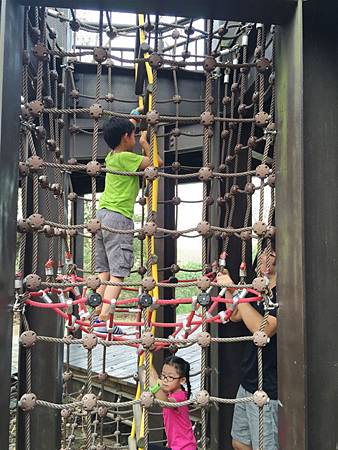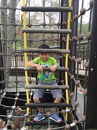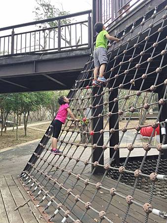 在溜滑梯後方有一個攀爬區,我覺得蠻安全的,也是一個可以訓練孩子膽量及大肌肉的好地方。