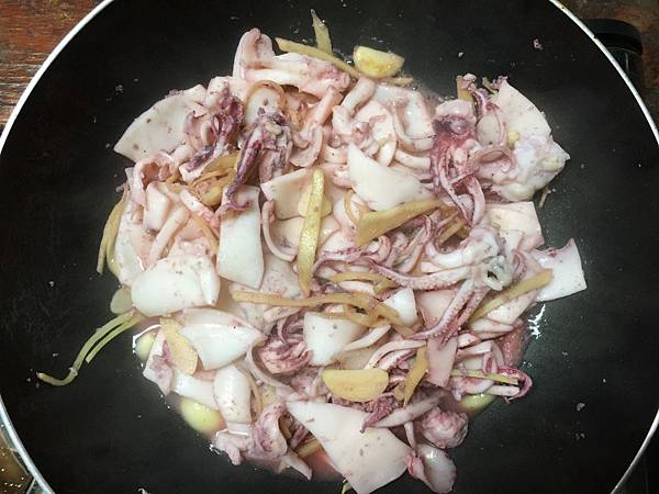 新鮮的海鮮真的不用太複雜的料理程序,只要把老薑及蒜片爆香後,丟入清炒就很好吃。