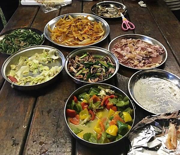 除了這一堆,我們還有其他的美食.如.韓式烤五花肉佐生菜、薑母鴨、泰式打拋豬...