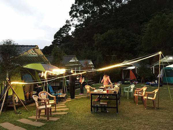 在客廳帳正努力煮飯時,我們烤肉趴替的主場地也快佈置好了~~