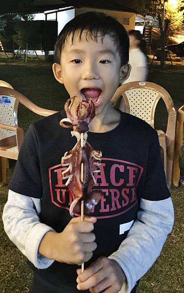 對哥哥來說,這一場烤肉的意義就在這串烤魷魚啊!