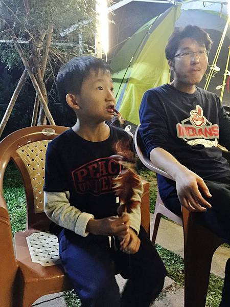兩個小兄弟合力把這一套海鮮搬進客廳帳(事實上....他們是在客廳帳門口接手...only for 拍照..)