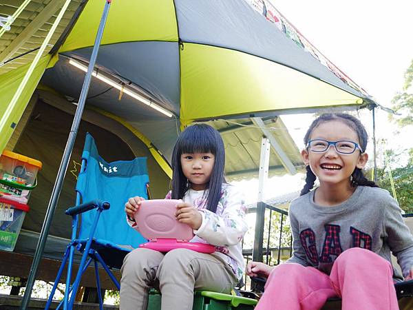 而另外這一組女生組則坐在帳篷前她們自己的小天地裡
