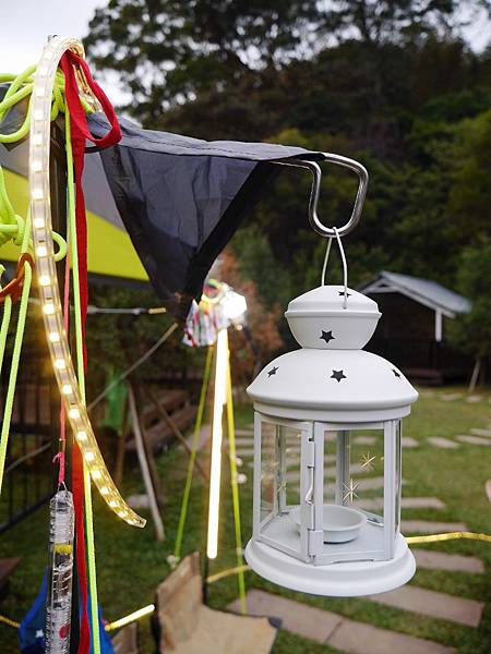 我們這次也多帶了一組很有氣氛的掛燈,等等要來點上一顆香氛蠟蠋,更添氣氛。