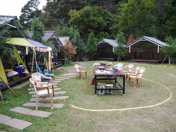 的確是一個很舒適的營區,每一棚都有木棧板及雨棚,位置也很大,我們是300X300的帳搭起來綽綽有餘,