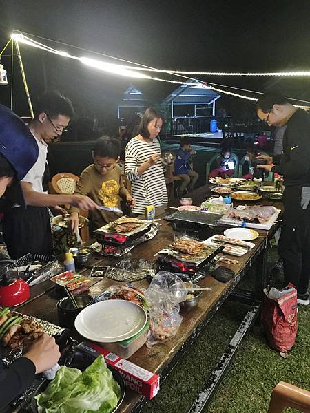 在這個時候,烤肉區也很浪漫的佈置起來了....LED串燈條舖在地上,這是要求婚的意思嗎?