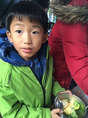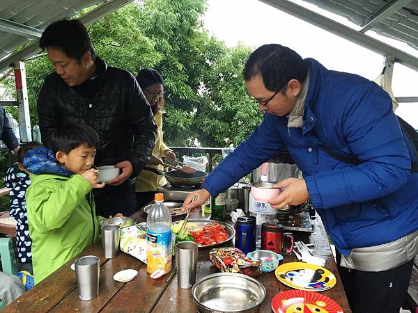 大人小孩全都吃得不亦樂乎~雖然這時帳外仍下著傾盆大雨..................