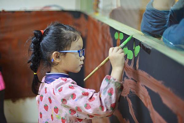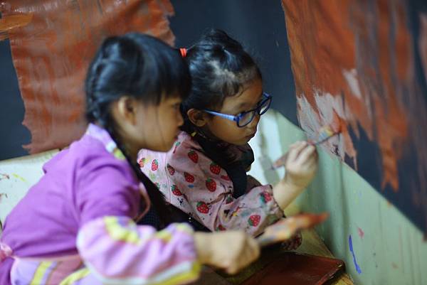 這是這兩兄妹第一次有機會畫在牆壁上耶~~~