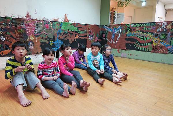在開始團創前,老師先把角鴞家庭的故事說給大家聽,啟發等等創作時的靈感,