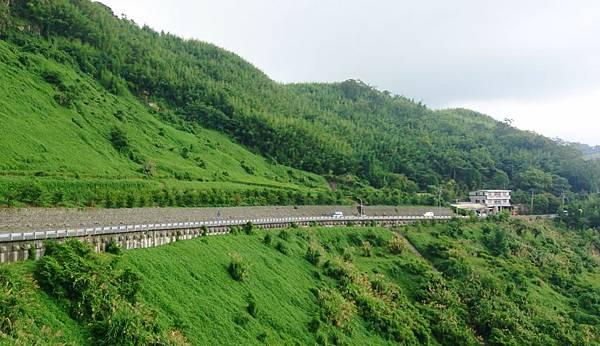 這翠綠的山壁美到我不禁搖下車窗停在路邊拍照,遠處那白色的建築物似乎是個觀景平台來著,可以俯瞰整個山谷