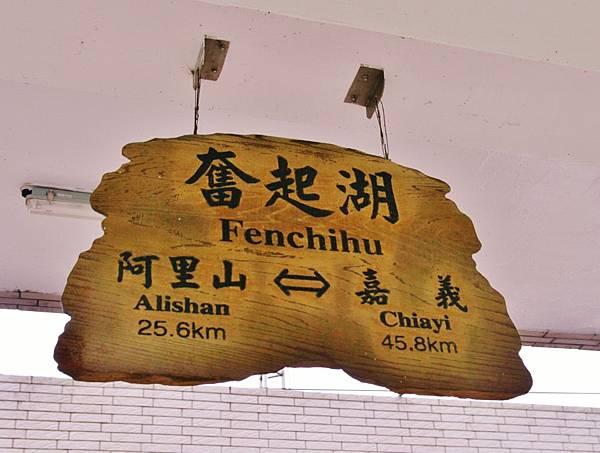 "奮起湖,舊稱畚箕湖、糞箕湖,隸屬台灣嘉義縣竹崎鄉中和村、海拔1,405公尺之山城。以阿里山森林鐵路中途站、鐵路便當、老街與自然景色聞名,有南台灣九份之稱。
