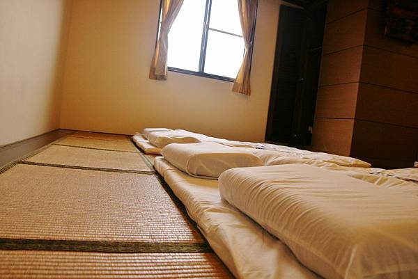 直接舖墊子在榻榻米上,我覺得枕頭及被子都算蠻乾淨的,雖然不新但就是整齊清潔的一個日式榻榻米房~
