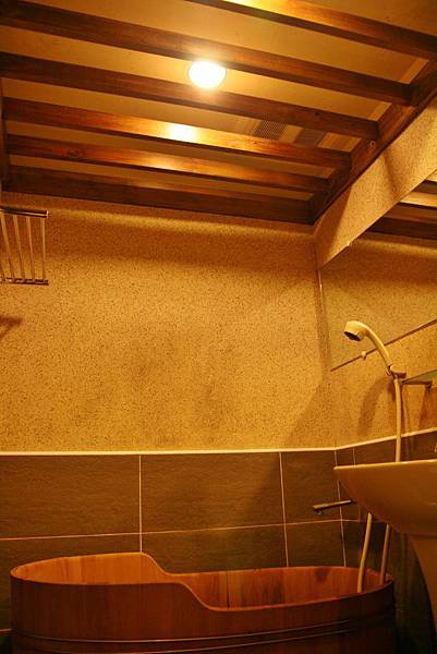 浴室是這樣的檜木桶,而且還有附藥草及檜木包可以泡澡喔!