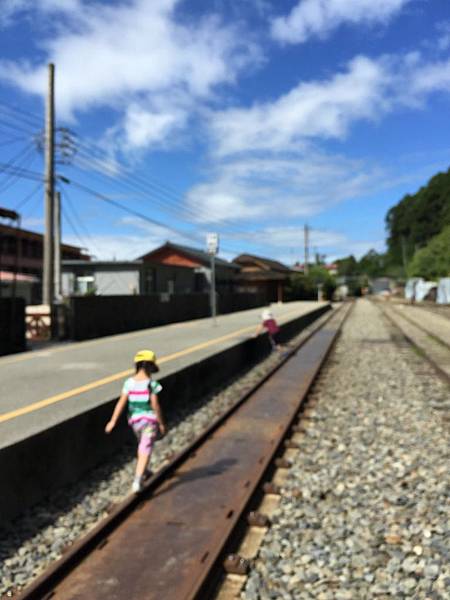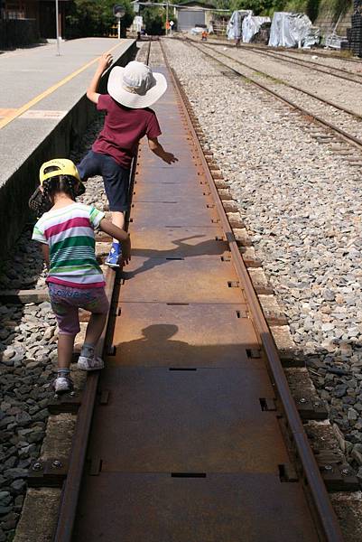 童年的背影,歪歪斜斜的走在一點都不好走的鐵軌上,好好玩啊!