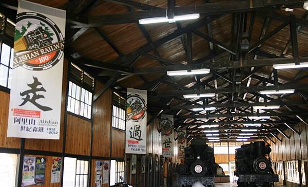 這裡有一個車庫,放著好多款阿祖級的舊火車頭,還有一幀幀的照片讓大家了解阿里山小火車的歷史,