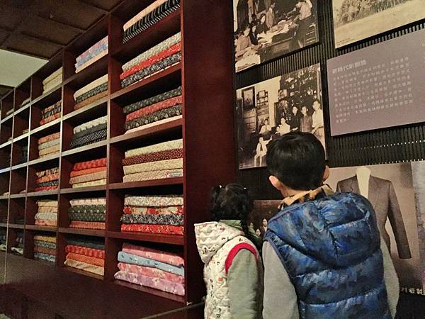 進入到大稻埕發展時代,布莊是當時的重點,這裡是在做旗袍的店面,牆面上有許多的花色可供選擇,