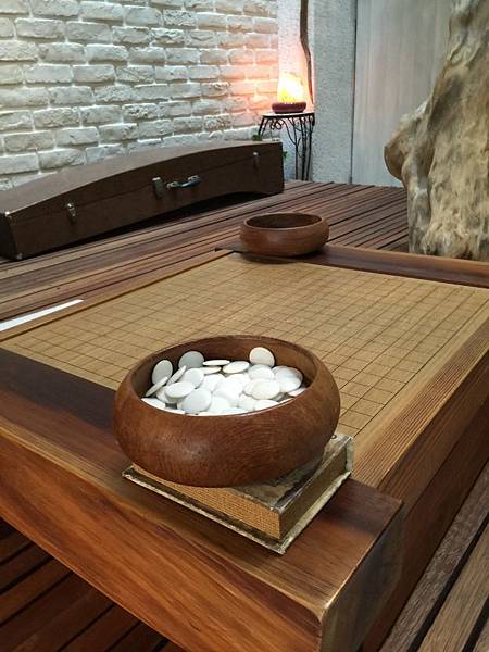 而在一旁架起了一個小小的木台,上面放著圍棋桌及幾個軟墊,這裡剛好給小朋友自成一區,到了晚上剛好玩桌遊。