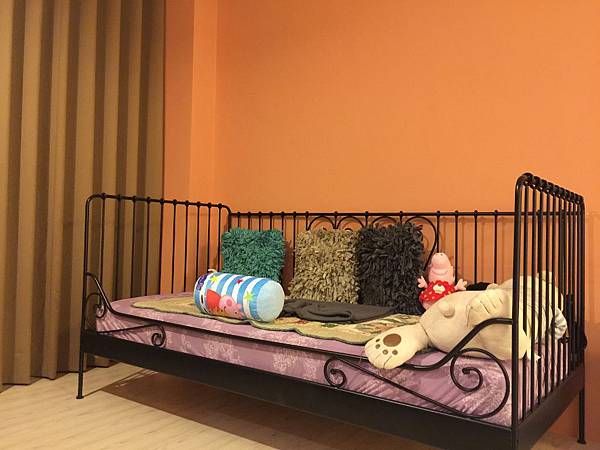 這裡面還有一個單人的沙發床,結果妹妹當天晚上決定要睡在那兒......開心的很~