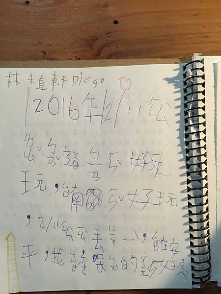 最後,請我們家的小一生寫了一篇留言在自在安平的留言本上。