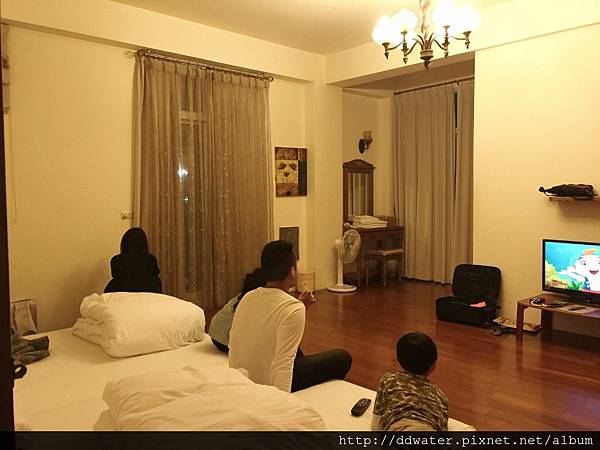 這間是也在2F的洋甘菊房,就在香蜂草隔壁,所以小朋友都跑到隔壁舅舅阿姨們看電視了!