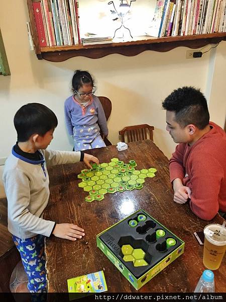 小孩們呢?當然就是桌遊時間囉,在廚房外的那張桌子開始進行孩子們的廝殺,感謝舅舅陪這兩位高頻率又難纏的小朋友玩~