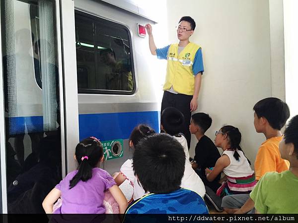 在滅火器使用介紹後,接下來來到一個車廂區,親自說明每天我們在搭的捷運有哪些緊急狀況的配套設備?